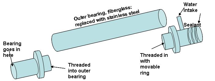 Just to give you an idea, the fibreglass pipe was drilled out, replaced with steel pipe sealed in from both ends with shaft inside. It is working great so far. Sounds like a better solution than original Beneteau design. I think I may sell this design for a modest fee, who knows.