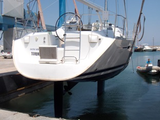 Our preparations started with routine maintenance such as oil and water filter changes, oil change, antifouling, etc. Then the marina's mechanical maintenance company (Uzman Elektronik) whom I hired for up keeping the boat informed me that outer bearing of the shaft came off loose. Upon investigation, we found that it was the fiberglass pipe that runs through the hull covering shaft for water and holding the cutlass bearing on one end and the seal on the other end was broken. Apparently, caused by a rope tangling, this was to be replaced. We called in the insurance experts to claim it as part of insurance coverage. We also discovered that the rudder needed some repairs due to chip offs and cracks, so all in all, it was quoted 7000 Euros, a rip off by all accounts.